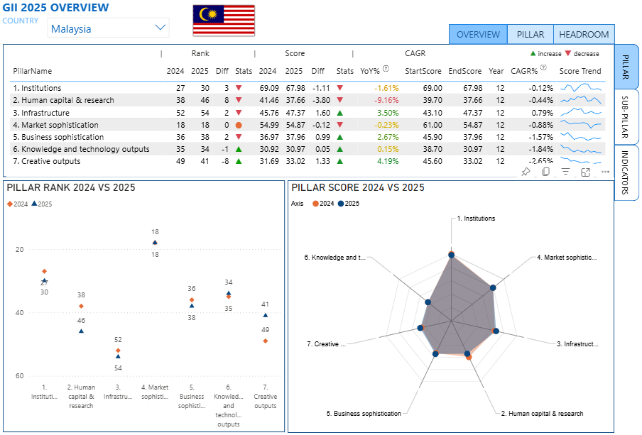 - To identify short-term, mid-term, and long-term targets to improve scores and elevate Malaysia’s position in the GII report.